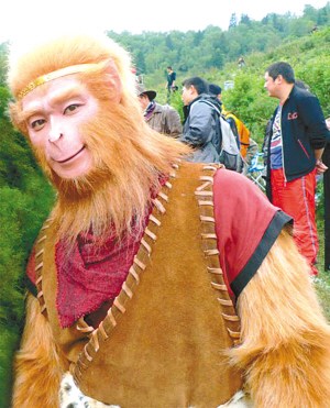 张纪中:以前没有条件,顶多在人鼻子上贴些毛,而我们现在有条件在细节上下工夫了。这些蓬松的毛发都是一根根编制,全部手工,耗资不小。