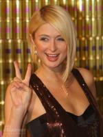 希尔顿性感黑衣大派香吻 抱玩具熊显童真(图)