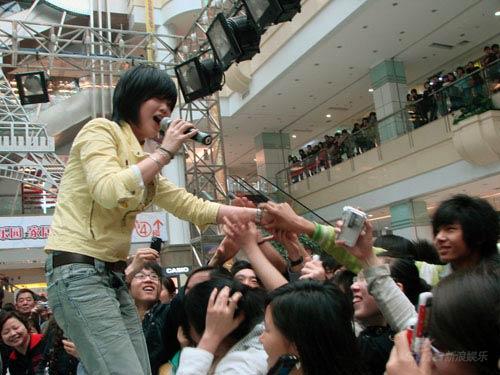 4月12日2008江苏卫视“雪碧飞扬新声-绝对唱响”在江城武汉拉开了首场选拔的序幕,短短一个上午就有近千名选手报名参赛,长长的人龙在武昌销品茂大厅里颇为壮观。为了给武汉的参赛选手们加油鼓劲,07届“绝对唱响”总冠军周晓晓也一大早来到了海选现场,作为首场开幕仪式的特约嘉宾深情献歌一首。
