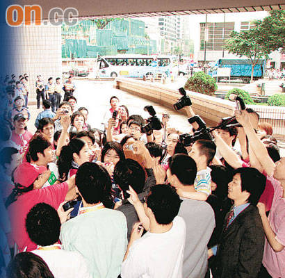陈慧琳不停向途人挥手,在欢呼声中完成任务