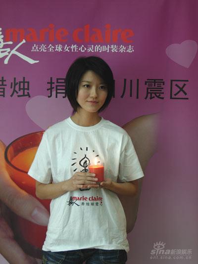 蔡淳佳郭美美赈灾奔波 点亮香烛为四川加油(图)