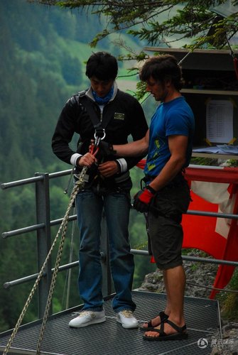 陆毅鲍蕾挑战极限运动 瑞士玩蹦极滑翔伞(图)