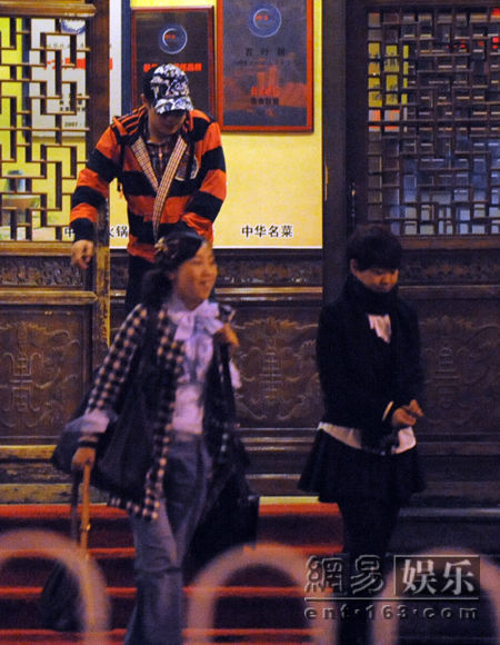 下午三点半左右,依然那身“伪装”的小沈阳和一个司机模样的人走出酒店,他们坐着一辆奥迪汽车来到阜城门附近的一家高级酒楼。小沈阳一下车就急匆匆地跑向酒楼,让司机只得在后面一路小跑紧紧尾随。小沈阳在这家酒楼大约逗留了将近三个小时才再度出现,这时他面带喜色。小沈阳再度上车,汽车最后来到珠市口附近的一家饭店,而刘老根大舞台就在附近。当晚有好几位朋友正在等待他的“光临”,小沈阳一到,众人才正式对着美味佳肴“开动”起来,小沈阳兴致很高,频频举杯,在吃饭的人中有小沈阳的妻子沈春扬。沈春扬既是小沈阳的妻子,也是他舞台上的搭档,老公出名后,“夫贵妻荣”,沈春扬也身价大大上扬,而“形象”也显出“富态”,加上当晚她还穿了一条黑色超短裙。