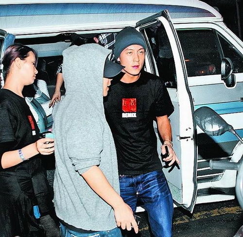 陈冠希下车醉意迷朦。