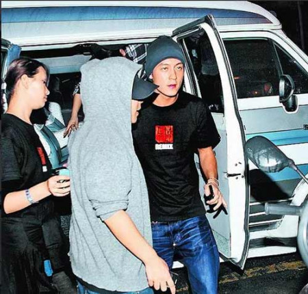 陈冠希(右)在助理搀扶下回酒店休息。(台湾“苹果日报”图)
