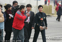 腾讯娱乐2010年3月8日北京讯,政协十一届三次会议第二次全体会议昨天(3月7日)在人民大会堂召开。宋祖英一身戎装现身,仍遭记者围堵,无奈之下宋祖英只好想尽办法绕开记者,可由于急着人数太多,宋祖英还是被堵在会场外。