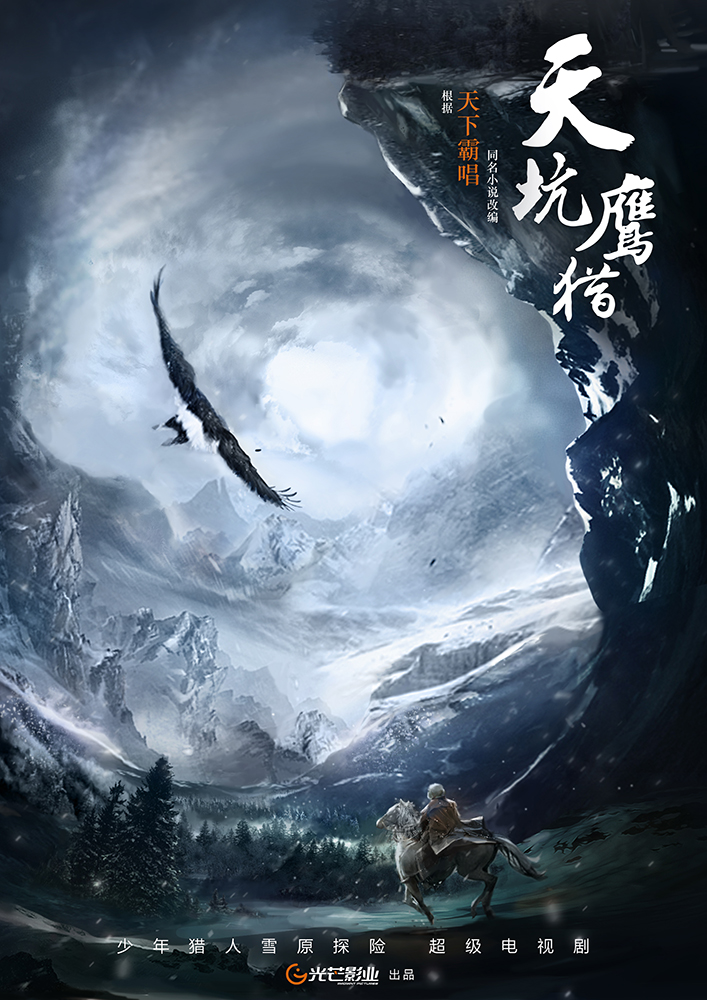 随后,电视剧《天坑鹰猎》的首款概念海报曝光:苍茫天地间,一鹰一少年,一个策马奔腾在广袤林海,一个振翅翱翔于浩瀚蓝天。人与自然和谐共生,少年与鹰正一起奔赴神秘雪山深处,开启这一场勇者冒险。