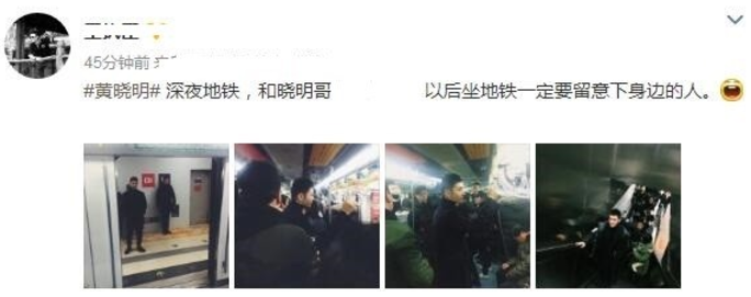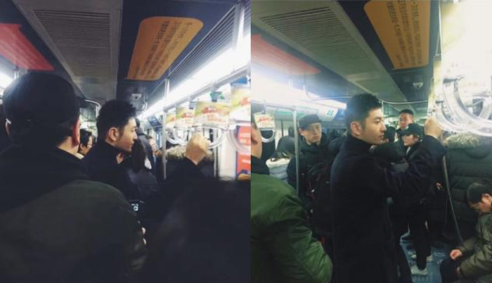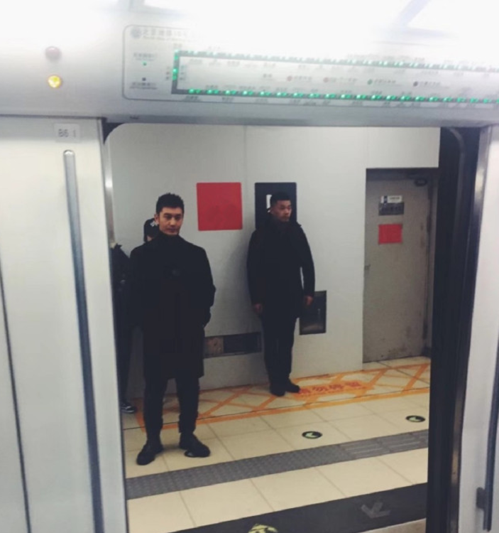 12月19日,有网友晒出了一组在北京坐地铁时遇到黄晓明的照片。黄晓明身穿一件长款大衣,手扶把手站在地铁里。
