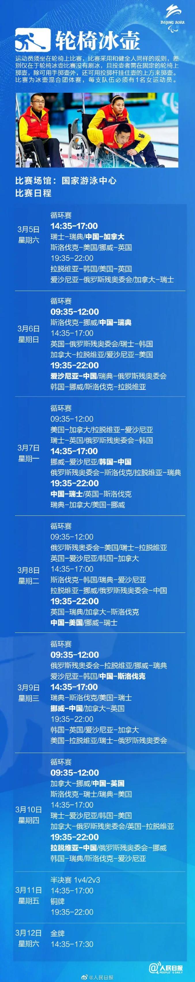 【北京冬残奥会赛程表出炉冰壶率先比拼】