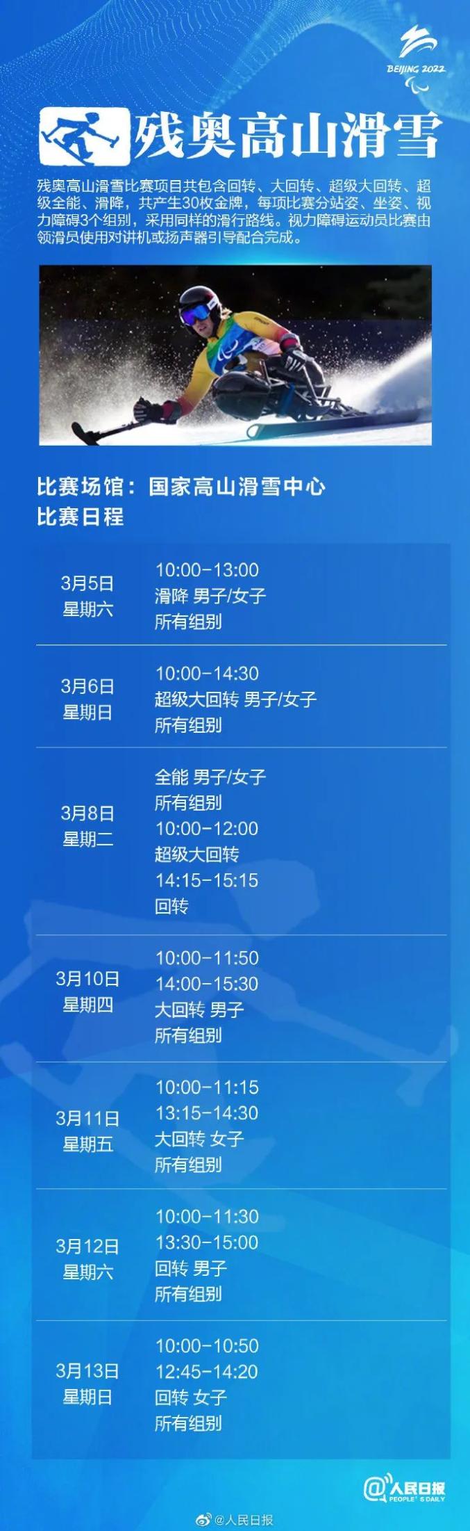 北京冬残奥会赛程表↓↓